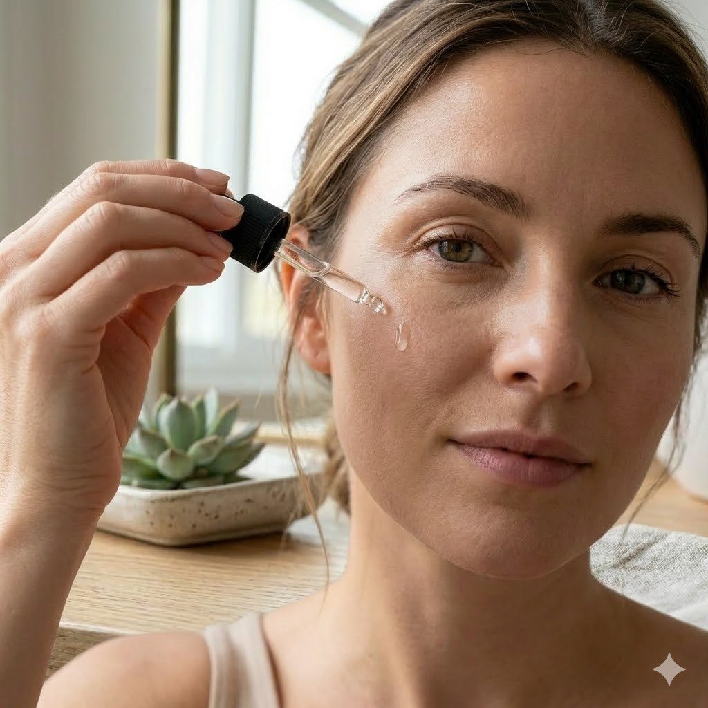 2. The Focus: Tap the serum into "expression zones" (forehead and eyes) using your ring finger to avoid excess pressure.