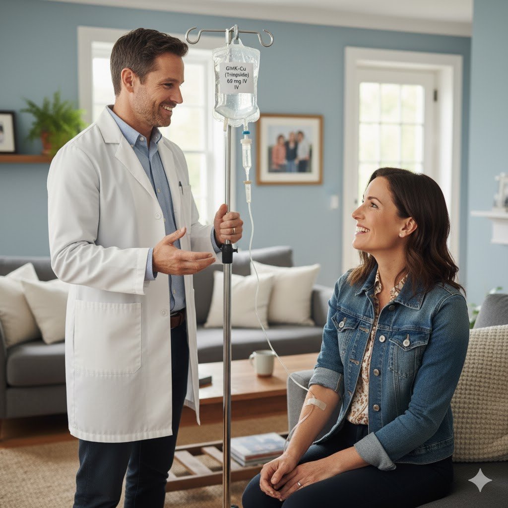 GHK-Cu (Copper Tripeptide) 60 mg injection therapy is a cutting-edge, science-backed treatment that enhances skin rejuvenation, tissue repair, anti-aging, and cellular regeneration. Now available as an injectable therapy at home in Dubai, this powerful peptide delivers deep systemic benefits — improving skin tone, elasticity, hair growth, wound healing, and even reducing inflammation and oxidative stress.