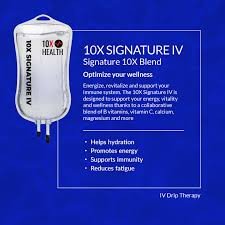This therapy is ideal for individuals looking to rejuvenate, recover from physical stress, combat fatigue, and improve overall health and vitality. The Signature 10X IV Drip offers a highly personalized solution for those who want a comprehensive approach to wellness, packed with essential nutrients designed to support a busy, active lifestyle.